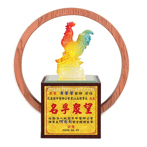 創意獎座-琉金-大吉大利(雞)-木座雷雕